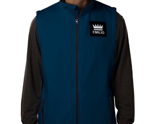 Emilio men's zip neck softshell gilet, size small, colour navy with two zip pockets and is a perfect solution to staying warm, showerproof and windproof material. Result core softshell bodywarmer outer-layer 100% Polyester Inner-layer 100% polyester microfleece.