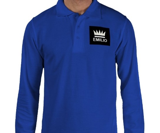 Emilio men's royal blue 3 button long sleeve polo classic size large with cuffed hems and comfortable 50% Cotton, 50% Polyester.