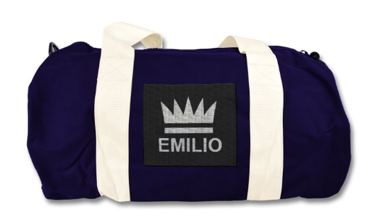 Emilio French Navy White Duffel Bag, measures 50 x 25 x 25cm Capacity 20 Litres 600D Polyester weight 320g detachable adjustable strap.